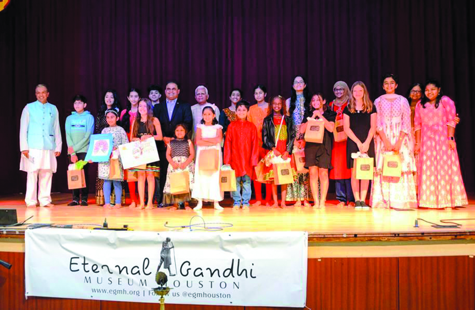 Fort Bend County Judge K.P. George and Mr. Atul Kothari, Co-founder and board member of EGMH, handed out awards to more than 20 student winners of the state-wide contests conducted by EGMH. The winners were announced by contest co-coordinator Ms. Jasmine Pirani.