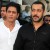 Shah Rukh, dressed in a white tee and denims, was spotted at a studio in Mumbai with his Karan Arjun co-star Salman, who was dressed in a black shirt and jeans.