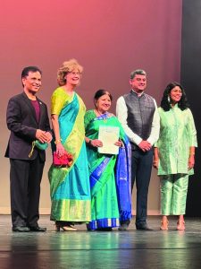 HOUSTON: Anjali Center for Performing Arts — one of the earliest dance institutes in North America, founded by Dr. Rathna Kumar, celebrated its Golden Jubilee last Saturday, August 2, at the Stafford Centre with thousands of her patrons and well-wishers attending to witness the felicitations and dance performances by her past and present students. India’s Consul General D.C, Manjunath joined Ken Mathew, Mayor of Stafford; Carol McCutcheon, Mayor of Sugar Land; Fort Bend County Judge Juli Mathew to honor this cultural milestone.CG Manjunath lauded the efforts of Dr. Rathna Kumar, in preserving and promoting India’s classical dance forms and nurturing young talent in the US over the past five decades. The evening featured mesmerizing Indian classicial dance performances.