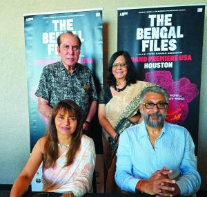 ‘The Bengal Files’ Producer and actress Pallavi Joshi (front left) and Director Vivek Agnihotri with Indo-American News Radio hosts Jawahar Malhotra and Sanchali Basu. By Sukanya Biswas