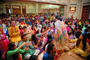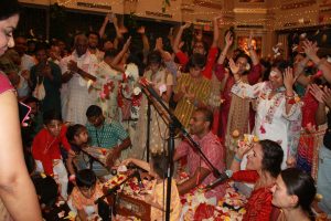 “The best way to celebrate is by chanting Krishna’s holy name and dancing, so that’s what we are doing,” said temple priest Madhav Charan Das “We are chanting the Hare Krishna Maha Mantra, which was introduced by Chaitanya Maha Prabhu.”