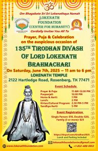 First ever Lokenath Temple in USA is inviting you to participate in prayer, puja & celebration on the auspicious occasion of 135th Tirodhan Divash of Lord Lokenath Brahmachari on Saturday, June 7th, 2025, from 11 am to 6 pm.