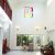 The new vaunted living room with a curved ceiling and stained glass windows reminiscent of Frank Lloyd Wright’s designs. The water wall is on the right.