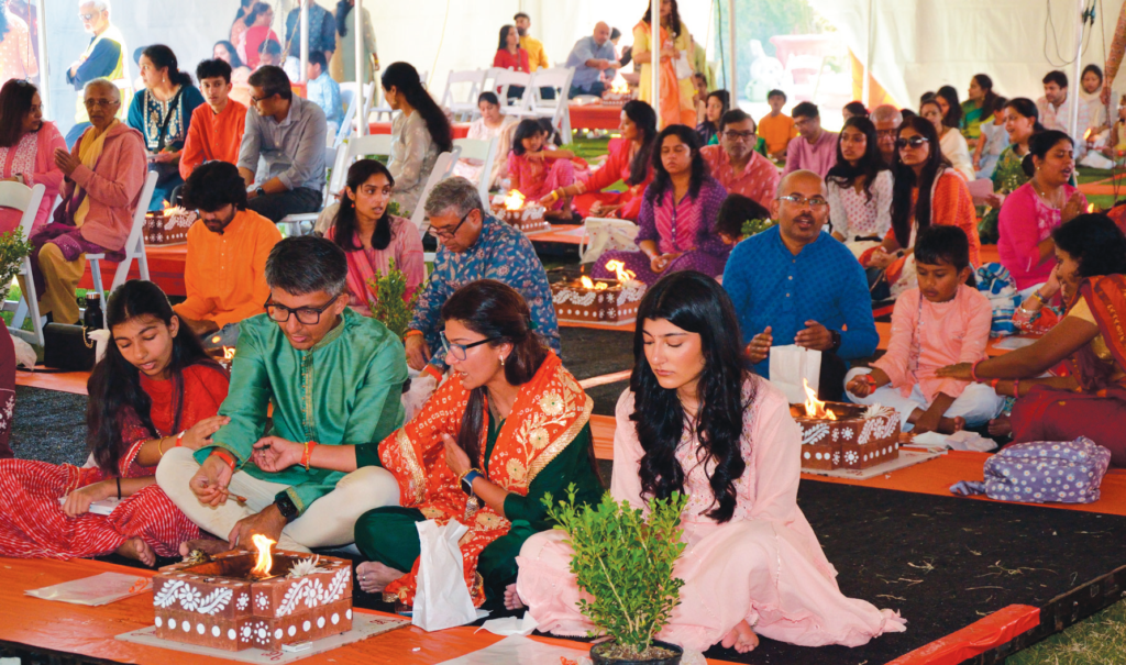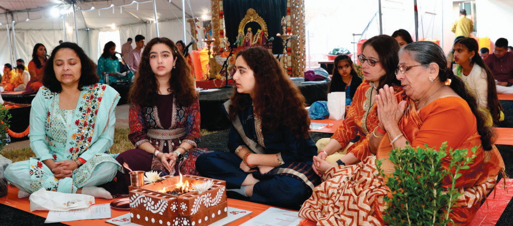 Despite the large gathering, the event unfolded with remarkable discipline, order, and a palpable sense of holiness. This seamless experience was made possible by the tireless efforts of a true Chinmaya army of volunteers who worked continuously, dedicating countless hours for months ahead to plan and organize the daylong prayer. Among them were 70 enthusiastic middle school and high school volunteers, whose remarkable energy and commitment embodied the spirit of service that Chinmaya Mission seeks to nurture in the next generation.