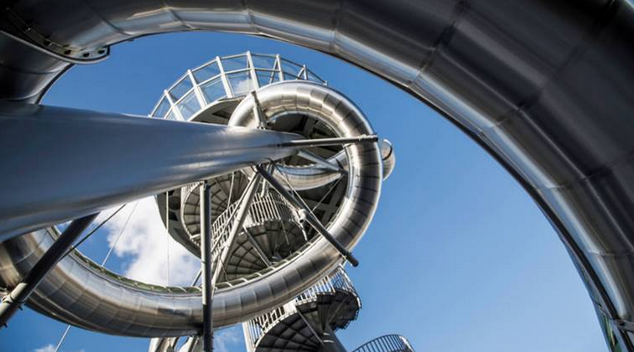 Don’t most of us love going on swings and slides? And if we don’t have time for it, isn’t it a pleasure to see the little ones enjoying themselves as they slide down? Be it the simple slides found in children parks or the thrilling water slides in amusement parks — the rides are, more often than not, a delightful experience. But, would you dare to slide down a nine-story tall slide? Yes, an artist’s gigantic metal slide installed in the US has left people on the Internet in a frenzy.