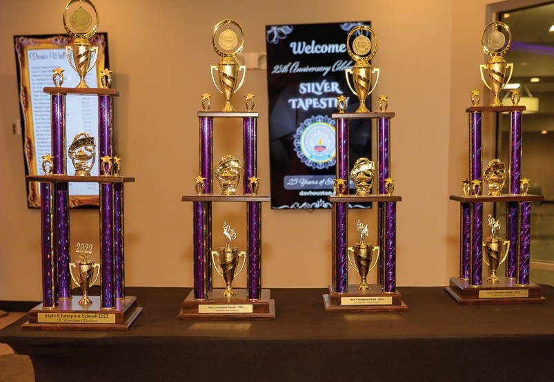 The evening opened with prayers and a soulful English rendition of the Gayatri Mantra. One of the founders, Dev Mahajan, reflected on the school’s humble beginnings, with just four students under the guidance of Arya Samaj Greater Houston. He shared the initial plans for expanding into a middle school, an idea first envisioned by fellow founder Shekhar Agrawal. Today, the Arya Samaj complex has 27,000 sf of facilities in addition to the school playground, basketball court and a playing field, all nestled next to the man-made lake off Schiller Drive in west
