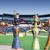 As the Sun glided down even with the stadium rim last Saturday, October 17, the crowds started swelling up and became engrossed in the bazaar like ambiance created by the stalls that lined the concourse on either side of the main entrance, which was anchored, as it was last year, by a huge idol of Ganesha, behind a beautiful colored rice rangoli of Shiva and Parvati, courtesy of Shiva Shakti Mandir. The outside of the Stadium was festooned with yellow and red flurrying drapes, the façade lit in brilliant LED lights and the music and commentary from the inside activities piped to speakers for the incoming crowd to hear.