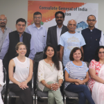 After a devotional offering to Lord Jagannatha, Lord Balabhadra, Lord Subhadra, and Lord Sudarshana, with the queen by his side, Gajapati gave a 90-minute lecture, with slides of the remarkable artwork depicting the legends and history of the famous Jagannatha Temple of Odisha and the origin of Lord Jagannatha.  He explained the deep connection of Jagannatha culture to Jainism, Buddhism, Sikhism, Christianity and Islam and the significance of Basudheiba  Utumbakam or “Unity in Diversity.