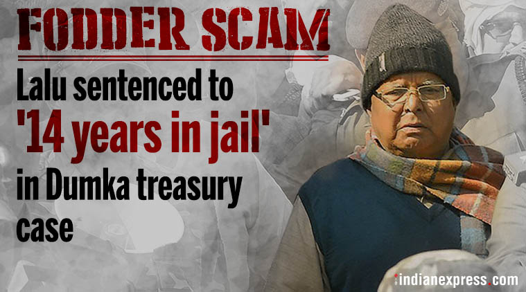 Former Bihar chief minister and RJD chief Lalu Prasad Yadav on Saturday was sentenced to “14 years of imprisonment” in the fourth fodder scam case that pertains to fraudulent withdrawal of Rs 3.5 crore from the Dumka treasury by Animal Husbandry Department officials between 1991 and 1996.