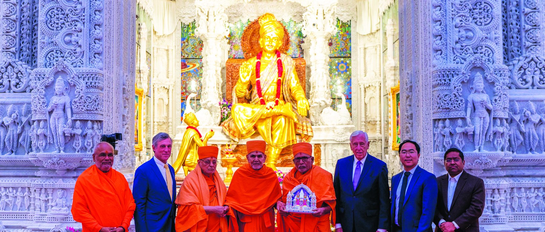 In his address to the audience, U.S. Congressman Steny Hoyer of Maryland mentioned, “This mandir is magnificent. We marvel at its immense size. We admire the craftsmanship behind the thousands of carved elephants, peacocks and other sculptures. But what I find most extraordinary is the community that built it.” Admiring the dedication of the volunteers and their selfless service, Congressman Hoyer continued, “They did it because they believe in the values this structure represents: equality, liberation, truth, harmony, and most importantly, service to others. The values enshrined here are not just Hindu values, they are human values.”