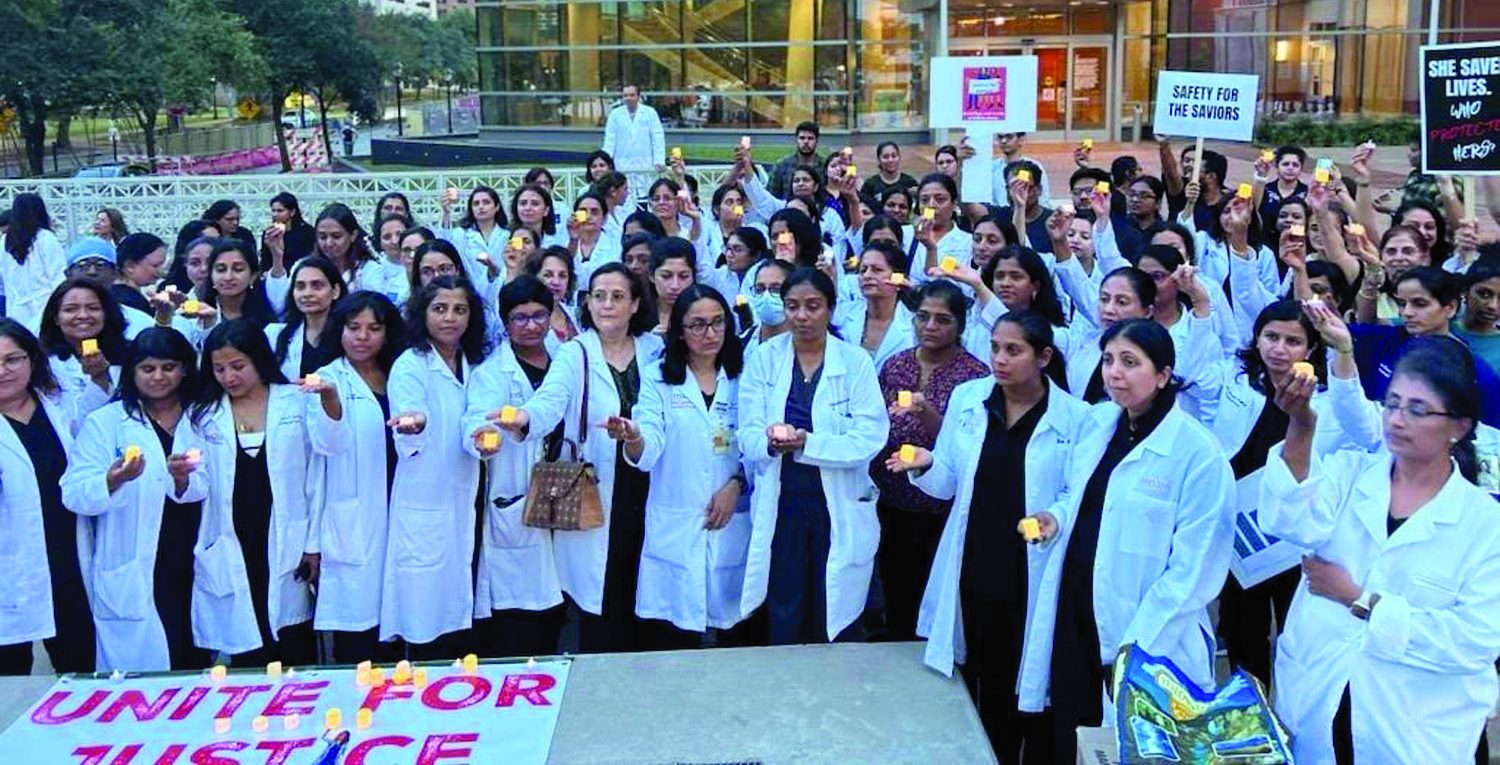 HOUSTON: On the evening of August 23, 2024, the Houston Indian Physician community came together in a solemn candlelight vigil to honor the memory of a young physician trainee who was tragically raped and murdered at RG Kar Medical College Hospital in Kolkata, India. The event, organized by medical professionals, students, and community advocates, aimed to express solidarity with the victim’s family and call for justice in a crime that has shaken the global medical community.