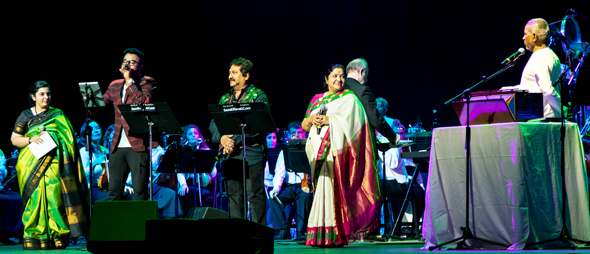 Their simple attire and a spectacular performance established the fact that outstanding talent shines with or without a mask of glamour. Ilayaraja has so many musical accolades to his credit that as soon as a song would take off it would be welcomed with a roaring applause from the audiences. And, in between his enthralling composition, Ilayaraja would have the audience in splits with his punch lines. His aura proved that he has all the strings of his troupe controlled thoroughly, and that is an honorable achievement by itself.
