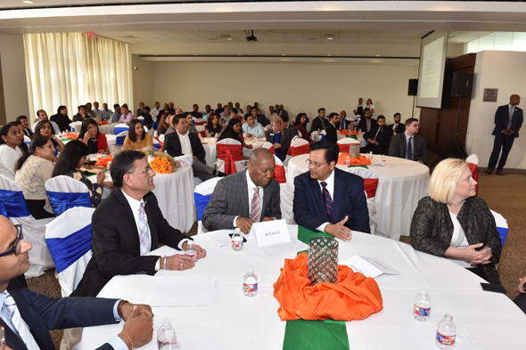 The enthusiastic crowd gave him a thundering ovation. His wonderful remarks were followed by quick Q&A session, where some of the community issues were raised and heard and the Mayor answered them all with a smile on his face. The afternoon came to a delightful end with the Mayor being presented with a recognition plaque by the IAPAC & SIMA Board Members. Scrumptious cuisine awaited the guests and they enjoyed a hearty lunch catered by Bombay Brasserie, and Darshak Thacker of Krishna Sounds arranged the sound for the event.