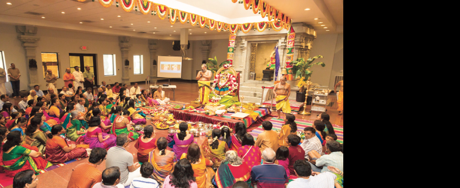 PEARLAND: We call HER by many names Padmavathi, Devi, Thaayaar, Mahalakshmi and more, our Goddess Lakshmi in the form of Moolavar, the installed deity at Sri Meenakshi Temple’s main sannidhi and in the form of utsavar, the procession deity who sat majestically, on a decorated podium at the newly renovated Ganesh Temple. She presided over the gold wrapped bricks which are to be used to build her a new sanctum with vimanam at the main temple so that her devotees can worship her with more pomp and splendor befitting her majesty. This Lakshmi Puja was the inaugural puja for the Main Temple Renovation project (MTRP).