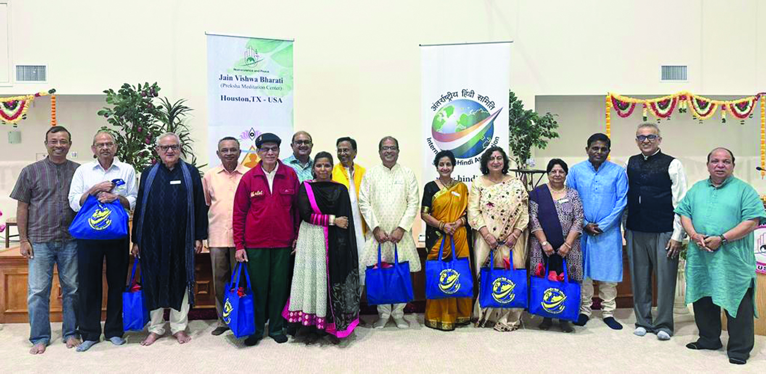 On the afternoon of Sunday March 12th, the JVB Preksha (JVB) Meditation Center was alive with the sound of laughter and poetic musings as the International Hindi Association (IHA) Houston Chapter hosted their event “Holi Ke Hindi Bol”. The program was designed to bring together Hindi-speaking individuals and celebrate the cultural and linguistic heritage of Hindi. The event coordinator was Pramod Bengani, a long time ICC- IHA- JVB Director and a Hindi enthusiast.At the onset of the program, two youth graduates, Vani and Shivani Jain from JVB Gyanshala, recited a melodious Bhajan on Bhagwan Rama.