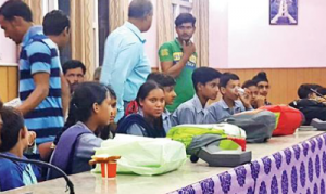 The program began with Indian Consul Anil Matta speaking of “the inspiration and guidance that seniors gave society and the country.” Sagar Sanghvani, a challenged strapping young man, strode to the stage with his mother and donated $101 that he had earned on his own. A dear older lady who everyone knows as “Maasi” but whose real name is Vilas Praful, sat onstage as it was being transformed into a prayer area, and sang two popular Gujarati folk songs. And tiny six year-old Eesha Dhairyawan, daughter of former ICC President Swapan Dhairyawan, recited a beautiful long poem in Hindi, much to the delight of the audience.