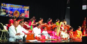 “Lalgudi Samarpanam”, a musical homage to this great legend and guru, was planned, choreographed and executed on May 4, at Anjali Center in Houston, with dedication and musical excellence by his disciples, renowned violinist Shri Vittal Ramamurthy and Houston’s proficient Carnatic vocalist and devoted teacher vidhushi Smt. Rajarajeshwary Bhat. They were ably assisted in this role by the members of Houston Youth Music Association (HYMA) and supported by Krishna Gana Sudha Music Academy (KGSMA) and Samskriti. The program, a beautiful garland of Lalgudi compositions, was led adeptly by vidhwan Shri Vittal Ramamurthy on the violin, Smt. Rajarajeshwary Bhat on the vocal music, and Shri Poovalur Sriji on the mridangam. Adding to this musical delight was the visual treat of Bharatanatyam dances for some of the compositions, choreographed and executed by our Houston’s own renowned South Indian classical dancer and loving guru Dr. Rathna Kumar. The event was eloquently emceed by Smt. Uma Ranganathan. The support of innumerable volunteers and parents of KGSMA who worked energetically contributed to the success of the event.
