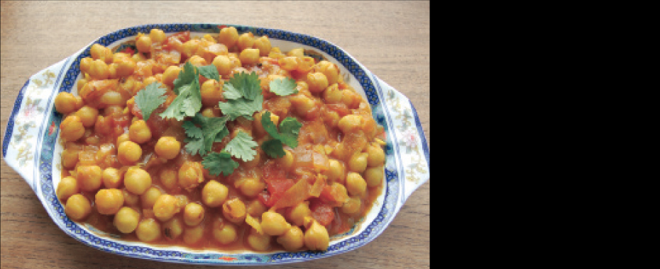 The Punjabi chole differ from those that you find in many restaurants in which the chickpeas are yellow with the haldi (turmeric) and are floating in a red curry. Instead, this recipe makes chole with a darker color, thicker curry and a satisfying garam masala after taste, and can be sprinkled with chopped coriander leaves and is delicious with plenty of garnishes like raw onions, achaar (pickles) and with long, spicy green Indian mirchen (chilli peppers).
