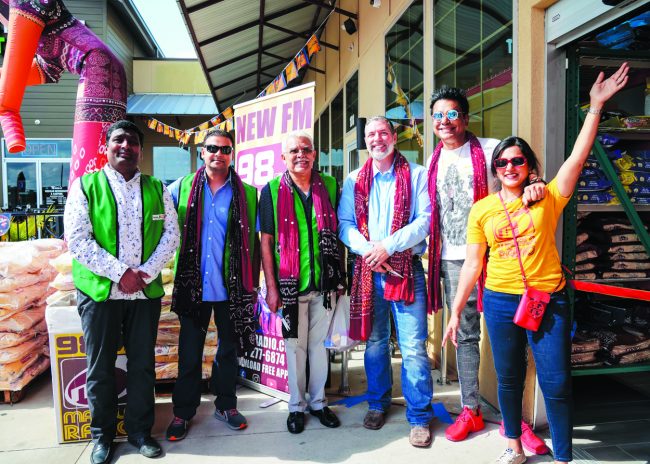 FULSHEAR: The sleepy neighborhoods of FULSHEAR were suddenly awoken to thumping Bollywood music and confetti in the air as Namak Mirch Grocers celebrated their Grand Opening with Masala Radio on Sunday May 15th from 10am to 1pm.   Mayor of Fulshear Aron Groff was thrilled to do the ribbon cutting honors.   By 9am there was a big line of guests down to the end of the building and the line kept getting longer all afternoon.   The owners of Namak Mirch Grocers –  Manan Mehta and Mohammad Akram – treated the guests to samosas, jalebis and water to cool themselves in the blazing sun.    Akrambhai and Mayor Groff handed out Silver Coins for the first 25 lucky guests.  Mayor Groff said  “What a crowd! Fulshear is officially the fastest growing city in Texas, and we welcome Namak Mirch to serve our growing South Asian population!  Everyone here is laughing, eating, and shopping – this feels like a Festival.  Looks like Masala Radio brought out everyone in Fulshear!”