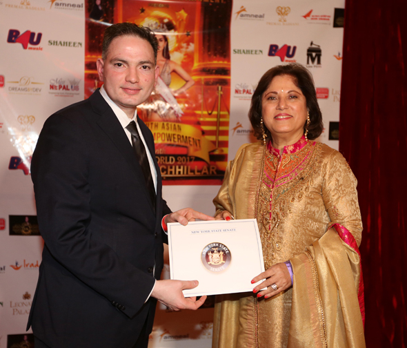 Neeta Bhasin receiving Proclamation by New York State Senator Jose Peralta.