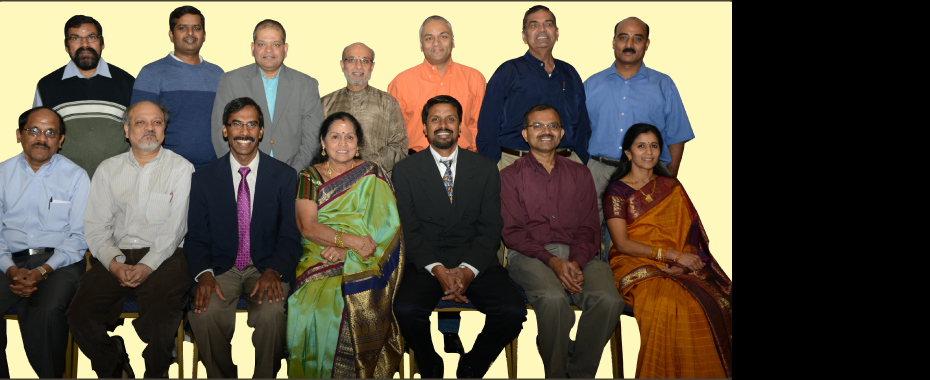 Transfer of Power at Sri Meenakshi Temple Society (MTS). From left : Srikanth Venugopalan (Incoming Secretary, P. Vaduganathan (Incoming Chairman) and Padma Golla ( Incoming Treasurer), MTS priests, Tupil Narasiman (Outgoing Chairman), Raj Mikkelineni ( Outgoing Secreatry) and Parthiban Dhanabalan (Outgoing Treasurer).