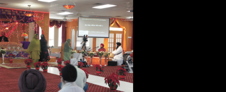 The Sikh Center has evolved in the property it owns at the end of the street which still has a rural and open feel to it. The sanctuary is located above a langar hall and kitchen and a couple of smaller buildings house the Sunday School and other offices. On this Sunday, as on most others, it was a hubbub of activity with a large crowd listening to the kirtan and gurbanis and a steady stream of people walking down the center aisle lined with blazing red wrapped pots of poinsettias to prostate themselves before the Guru Granth Sahib, even as the chief guest Harris County Commissioner’s Court Judge Ed Emmett spoke at the podium.