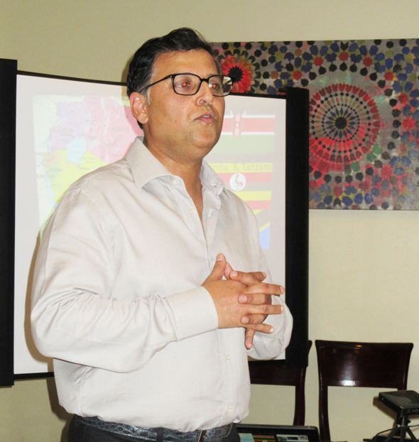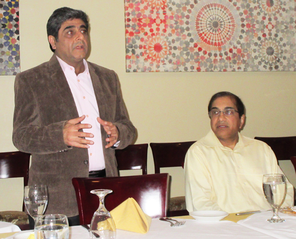 Atul Vir, the co-founder of the Connoisseurs Club, introduced the speaker Munir Ibrahim at the dinner social held at Nirvana restaurant in early March.