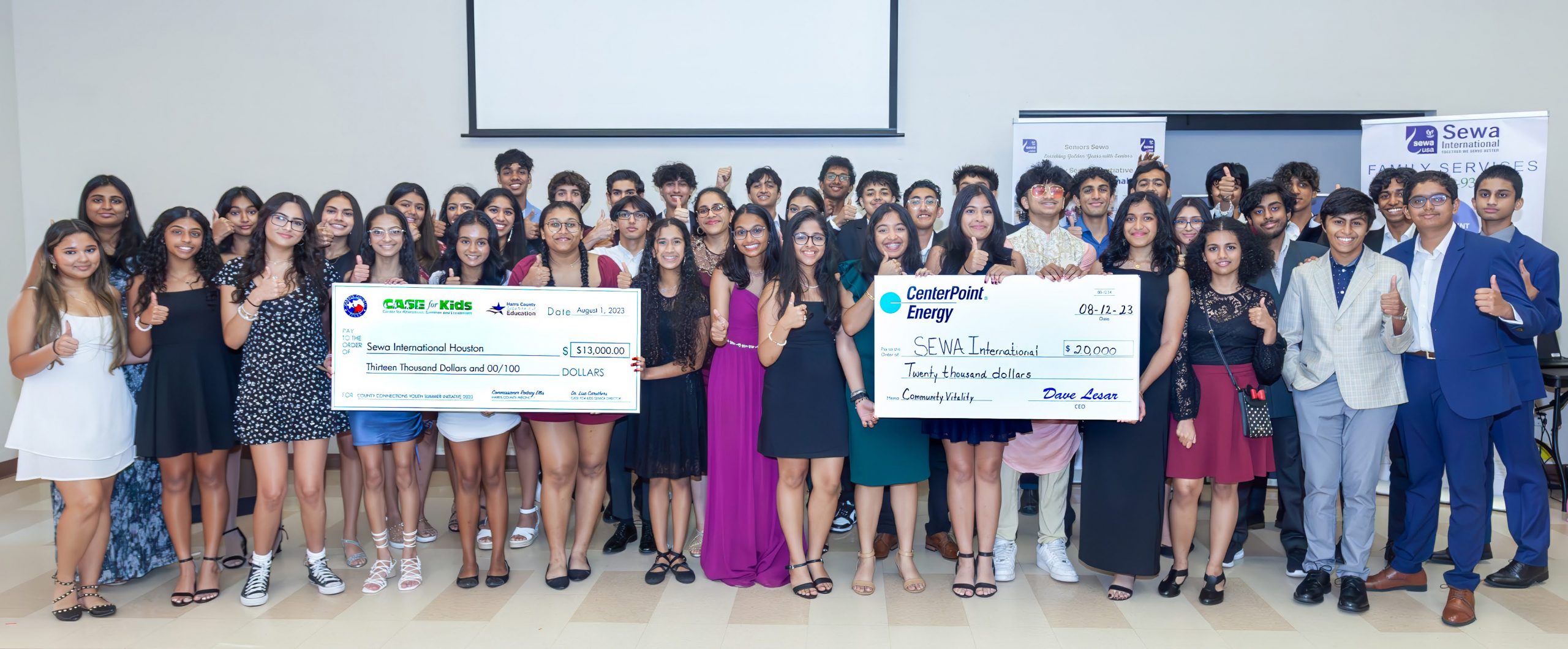 HOUSTON:  Sewa International Houston Chapter hosted an Internship Gala for their “Get Inspired Houston” (GIH) and “Leadership Development through Community Engagement” (LEAD) interns on August 12 at the T.E. Harman Center in Sugar Land. The event was designed to celebrate the many accomplishments of 49 interns this summer. The interns accumulated over 4,558 hours of service in nearly nine weeks and served at Sewa’s ASPIRE (Assuring Student Progress in Remedial Education) centers, the Houston food bank, participated in a 5K Walk, attended leadership sessions with prominent community members, and underwent FEMA’s CERT (Community Emergency Response Team) training.  Their service helped 75 kids at these centers and it also helped these interns to become better citizens of society.