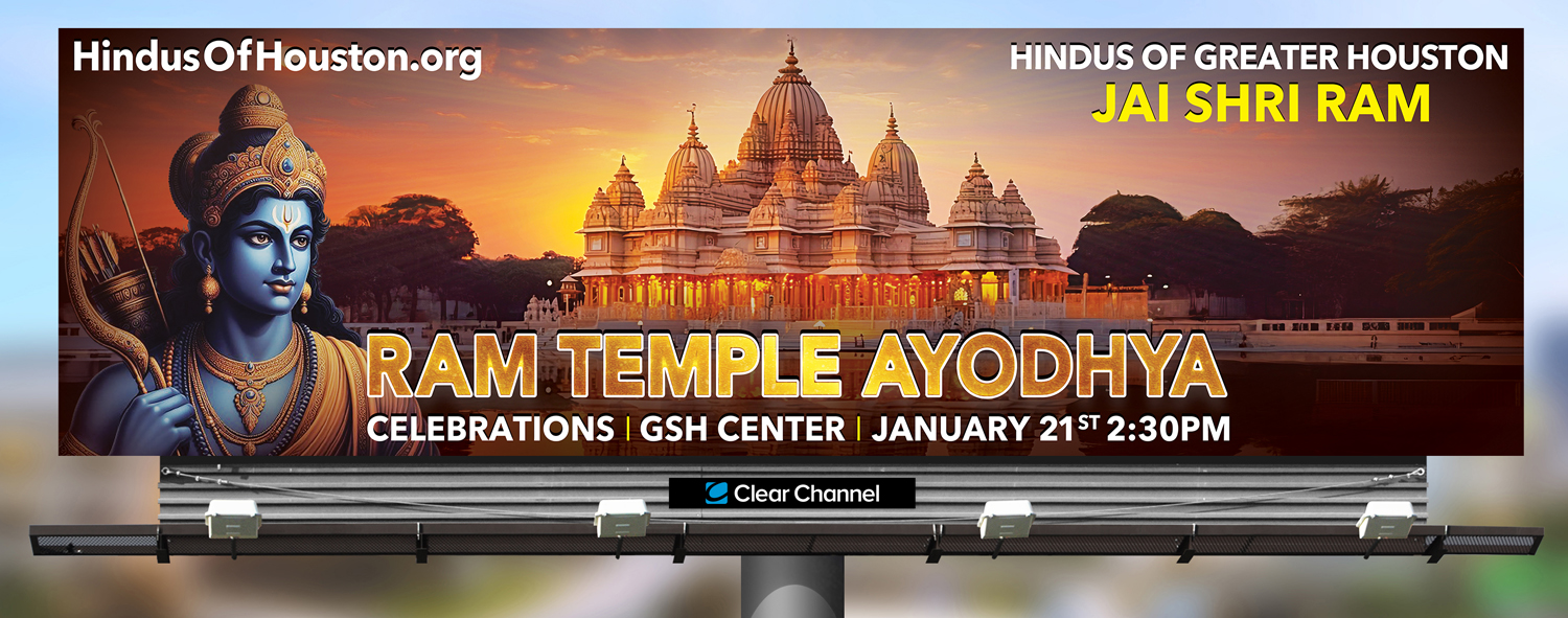 “In addition to putting Hindus of Greater Houston on the map, the billboard aims to remind the community about the inauguration, in the presence of the world’s leading saints and luminaries on January 22nd in Ayodhya. To mark the momentous the event, a grand celebration is being organized in Houston on January 21st. All are invited to join this celebration,” said Mr. Vijay Pallod of Hindus of Greater Houston.