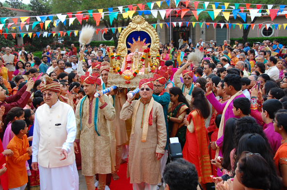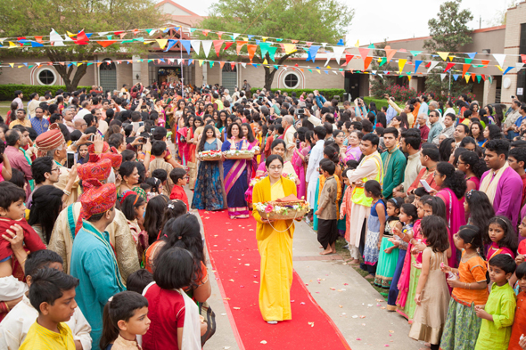 Even the weather participated gently, as a gentle breeze blew and the Houston skies balanced clouds and sunshine. CMH followed even the minutest detail of tradition as all devotees were served water, flavored majjige (buttermilk), lemonade, and sweets after the divine wedding. As the event came to a close, everyone had a special darshan and all were treated to a sumptuous mahaprasadam.