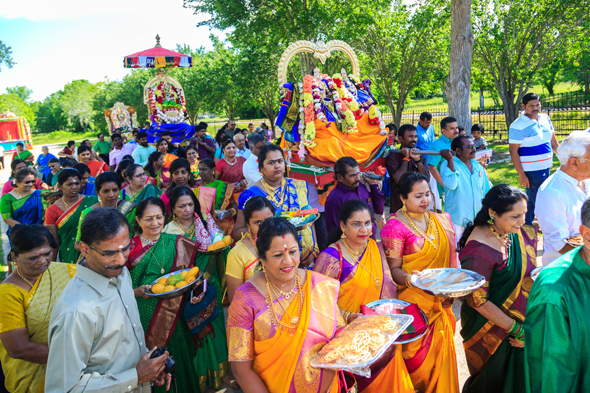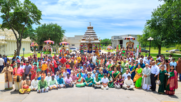 Pearland: Sri Meenakshi Temple celebrated its Main Temple Anniversary on Sunday July 5th. This is the 38th year since the main temple was consecrated with the Maha Kumbhabhishekam in 1982. This year, due to the pandemic surge in the Houston area, the temple is closed for the public. Neverthless, the celebration went on with hundreds of devotees viewing the livestreaming via Facebook.