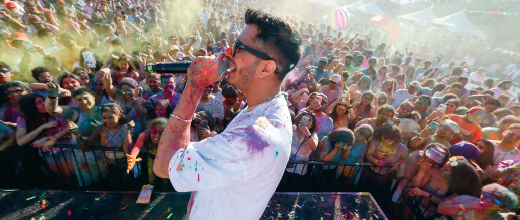 The 80-degree breezy weather perfectly sun-kissed the pichkari-soaked population as they enjoyed Bollywood Music, Vegetarian Indian Street Foods & Activities. New this year was a line of local drinks and desserts. Arjun rocked the concert generation with his brand new release, “We Aint Gonna Stop – Ek Pal Ka Jeena” and “Give it all away – Jaane Jaana”. “The scene was straight from a Bollywood Movie – a chaos of colored smoke, powder & confetti bombs, and yet so smoothly organized” said Ameeta Achari.