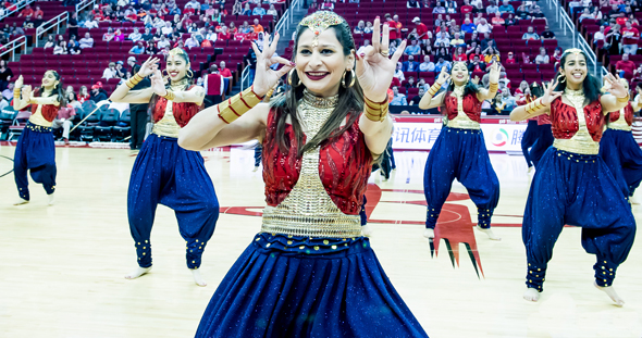 HOUSTON: Having a super Half Time at a pressure-packed NBA game can be as thrilling as the stretched run itself. On Friday, March 30 Houston witnessed history at the Toyota Center, with the electrifying match of Rockets v/s Phoenix Suns. The remarkable game was complimented with the mesmerizing medley performed by Rhythm India. Rhythm India was the first ever Bollywood Dance Company to perform at Half Time at the Houston Rockets game in 2011. And since then, they have been adding up the spice during these intoxicating tournaments. Their 7th consecutive performance at the NBA game was noteworthy and coincided with the number one position of Rockets. The enthusiastic Houstonians were thrilled to cheer on Rockets, who were down by almost 17 points before Half Time.
