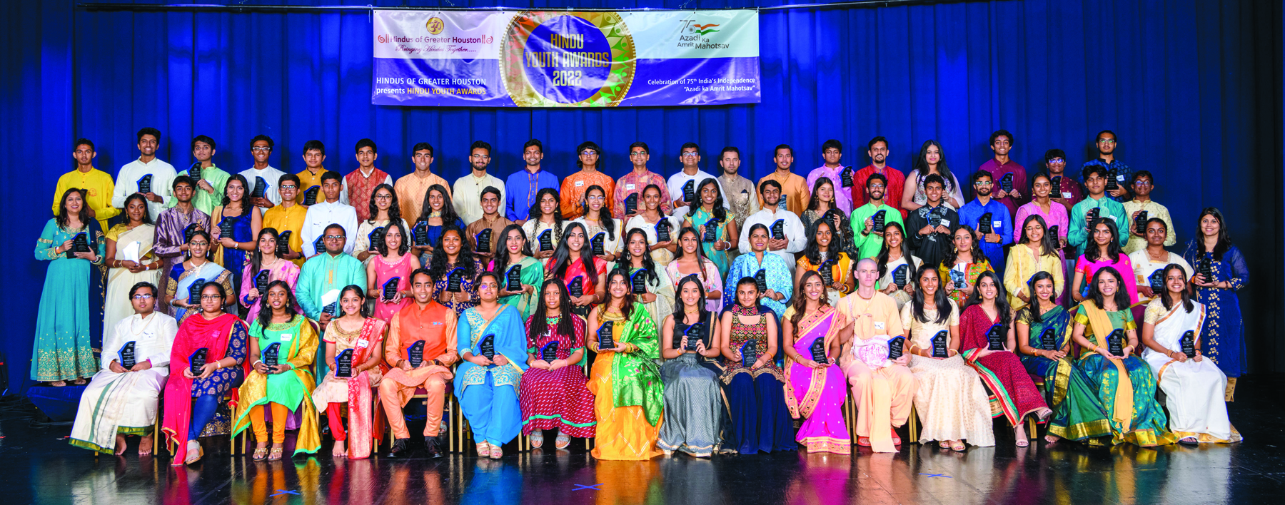 PEARLAND: It was an outstanding and original idea of the Past President of Hindus of Greater Houston, (HGH), Partha Krishnaswamy, who suggested to celebrate 75 Hindu youth this year, on the 75th year of India’s Independence. 75 youth were recognized for their service to the Community. This year Hindu Youth awards was held at the beautiful Auditorium of Sri Meenakshi Temple in Pearland, Texas.