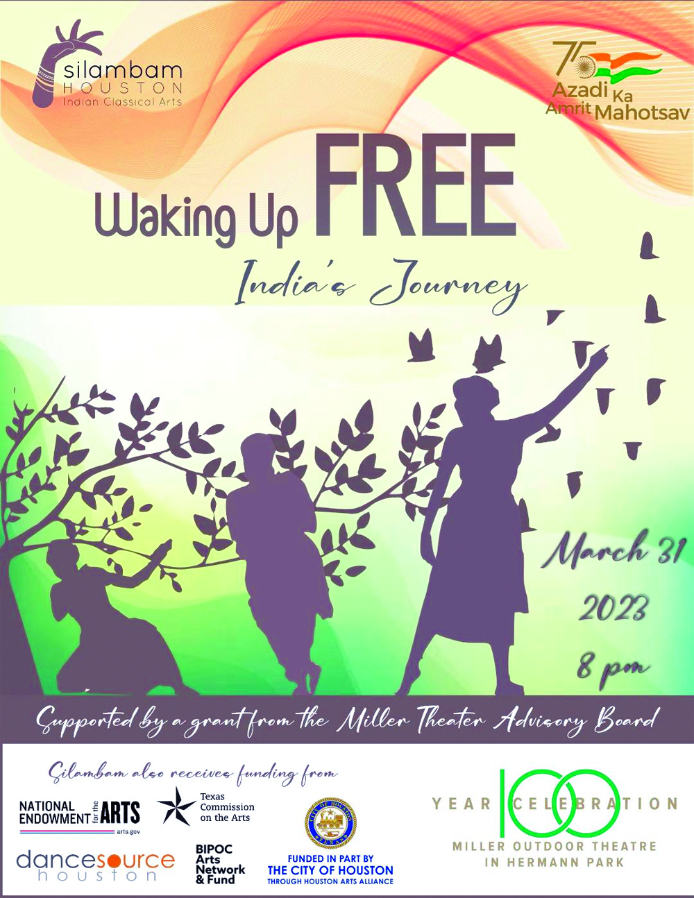 HOUSTON: ‘Waking Up Free: India’s Journey‘ premieres at the Miller Outdoor Theater on March 31, 2023, at 8 pm, as part of Miller’s 100th season and in the 75th year of India’s Independence.