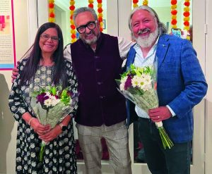 Gopaal Seyn (center) with guests of honor Sanchali Basu and Rick Pal.