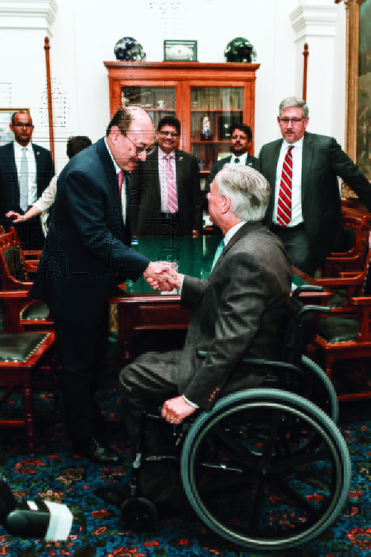 Governor Abbott visited India in 2018 as part of a trade mission promoting Texas, where he also met with the Prime Minister of India, Narendra Modi.