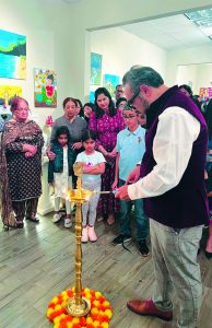 Emcee Shefali got the evening going by inviting the guests of honor to light the ceremonial lamp with Gopaal. Rick Pal, a successful entrepreneur, global executive, TEDx speaker spoke of his long-term friendship with Seyn and expressed his pride and joy to see his amazing journey as an artist and teacher and wished him continued success. Sanchali Basu was introduced as a pharmacist with a passion for the arts like classical dance and teaching Bengali to children. She echoed Rick’s sentiments and lauded the students for making time out of their busy schedules to allow their creative minds to create original work and congratulated all of them for their wonderful display on exhibition.