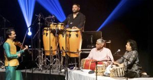 Ambi Subramaniam (violin) with Daniel Feldman (percussions), Mahesh Krishnamurthy (mridangam) and Tanmoy Bose (tabla) Courtesy: Golden Ray Photography