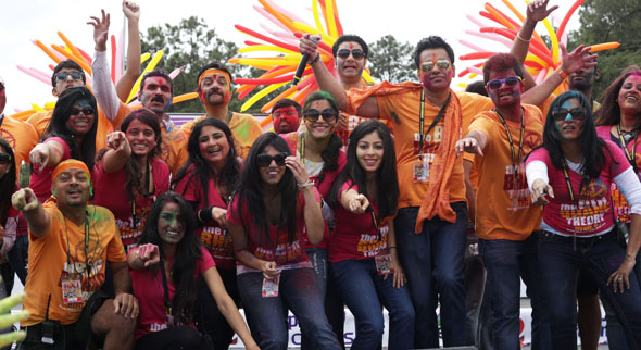 The only challenge with this otherwise perfect location was the parking. Had everyone been able to park, the event would have boasted over 20,000 people. However, 2000 parking spots were at full capacity at 1pm and there were lines for up to an hour to get inside parking lots until 4PM. Yet faithful patrons arrived as late as 4:45 PM and insisted to go in even for 15 minutes of Holi play. This year saw the most diverse crowd. Tara Energy had over 250 RSVPs from their diverse office attend the event, and guests from all corners of Houston flocked to play “HOLI”. Sunil Thakkar said, “At least 30% of the crowd were non-Indians. I believe it’s time to take the event to the next level, a bigger park with 4000-5000 parking spots and appeal to all of Houston.”