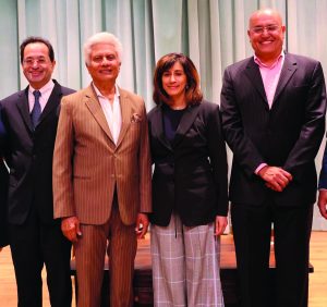 TiE Houston President Dr. Ram Shenoy, with Guest Speaker Riaz Siddiqui, Past-President Aruna Viswanathan and Keynote Speaker Sabeer Bhatia